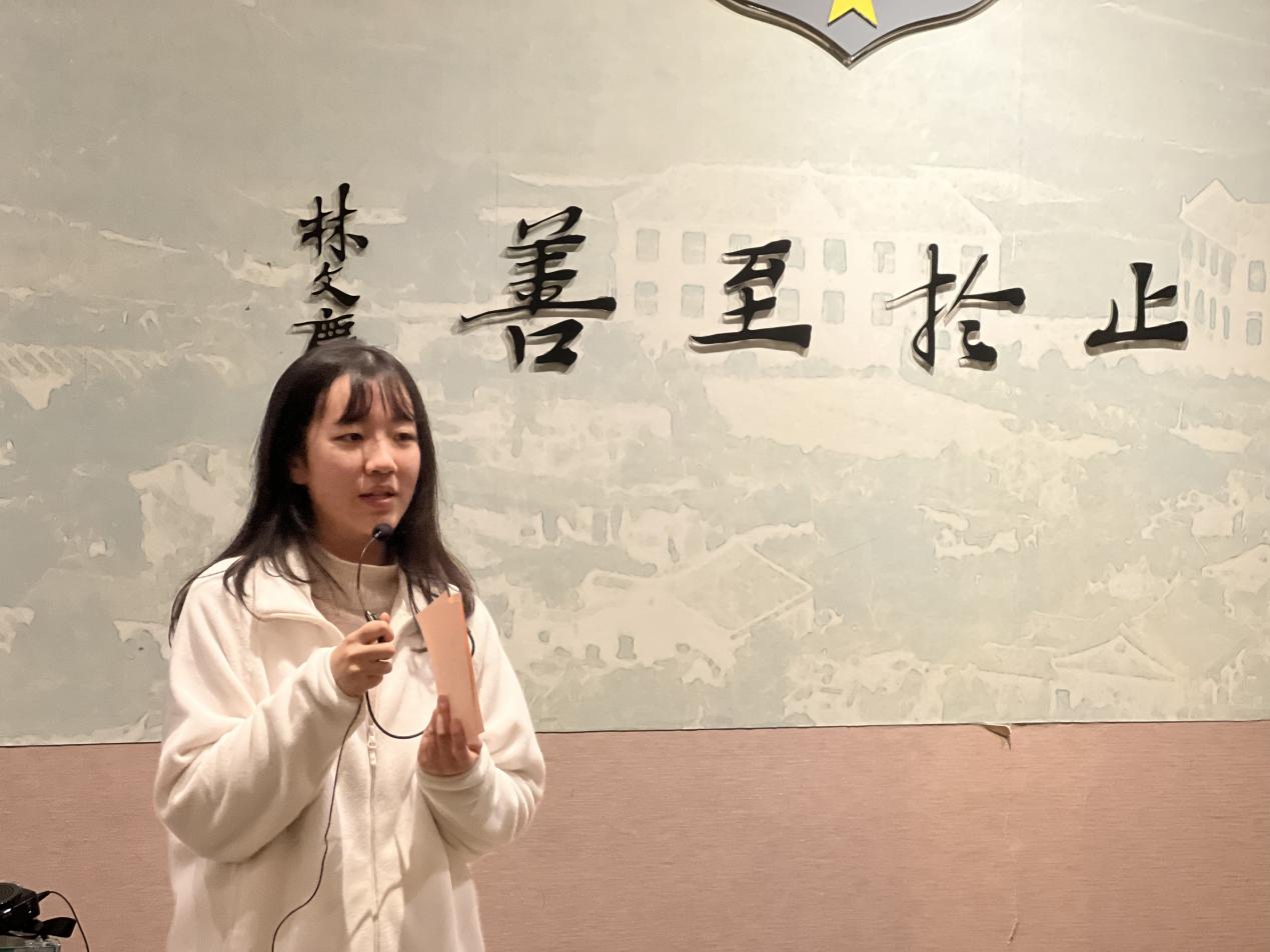 “同志们,校主陈嘉庚先生宁可变卖大厦,也要支持厦大,作为厦大的学子我们要牢记’爱国、革命、自强、科学’四种精神……”