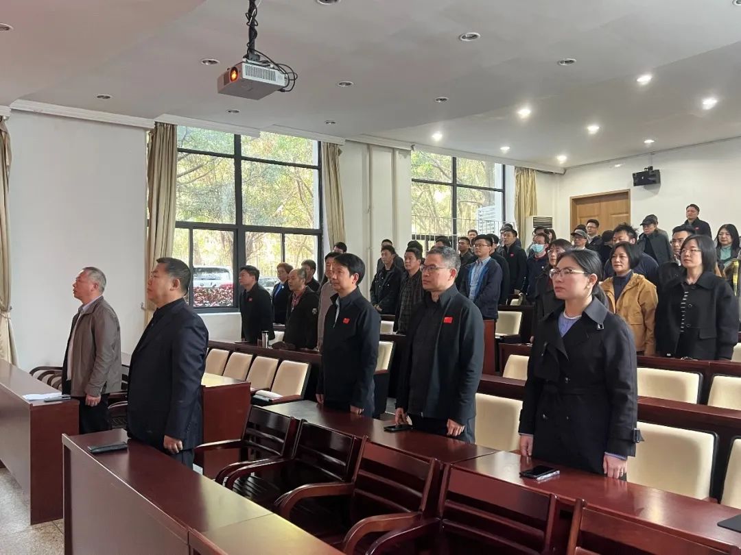 会议在国歌声中拉开帷幕,威武雄壮的国歌声响彻全场,全体教职工起立,唱响那份属于中国人的自豪。