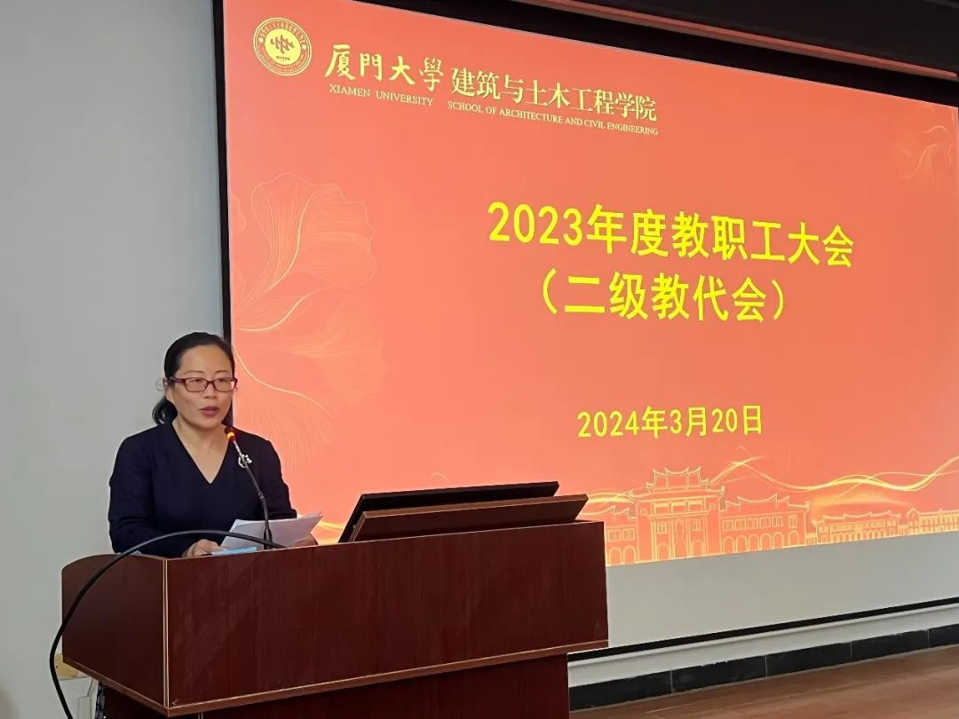 3月20日,厦门大学建筑与土木工程学院2023年度教职工大会(二级教代会)(以下简称院二级教代会)在曾呈奎楼118室举行。
