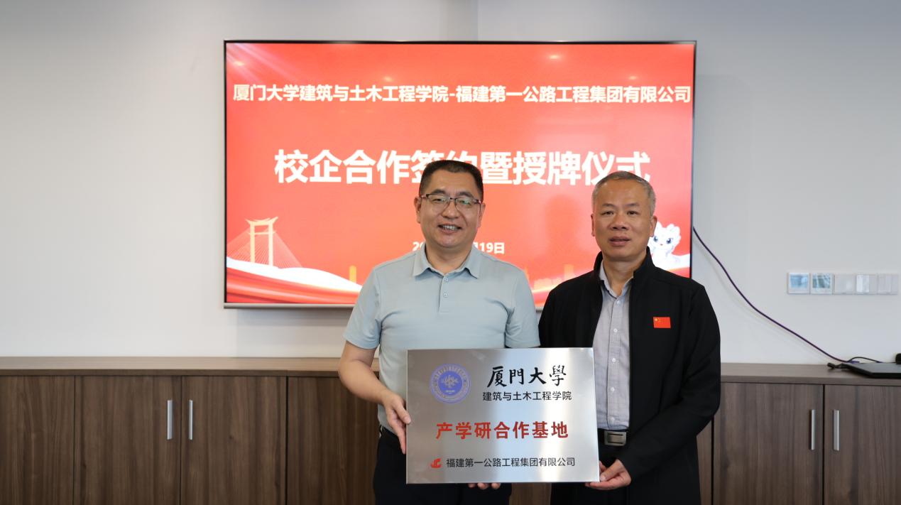 为进一步深化产教融合,探究校企合作新模式,开辟人才培养新路径,4月19日,厦门大学建筑与土木工程学院院长张建霖、副书记邹海燕、土木工程系系主任高婧教授、副主任陈志为教授、张建国副教授,王华昆助理教授一行前往福建第一公路集团台商总部闽路大厦,开展校企合作签约暨授牌仪式,第一公路集团公司党委书记、董事长陈亚鹏,党委副书记、总经理宋珲、泉州交发集团工程管理部总经理刘汉河等共计10余人参加本次活动。