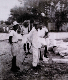 (陈嘉庚巡视芙蓉楼、丰庭楼建筑工地,摄于1951年)