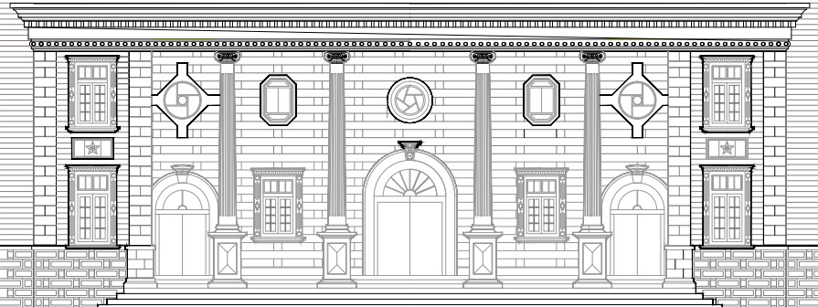 主入口门厅,有四根精雕细琢的爱奥尼式的圆形花岗岩石柱,柱高8米,上下收分渐变,柱身有凿痕,柱础高1米,线条层次丰富多变,与精细加工的长方柱础结合,高大宏伟,空间感强,和谐美观。门厅外墙柱间,有五个图案别致的白色花岗岩玫瑰石窗。