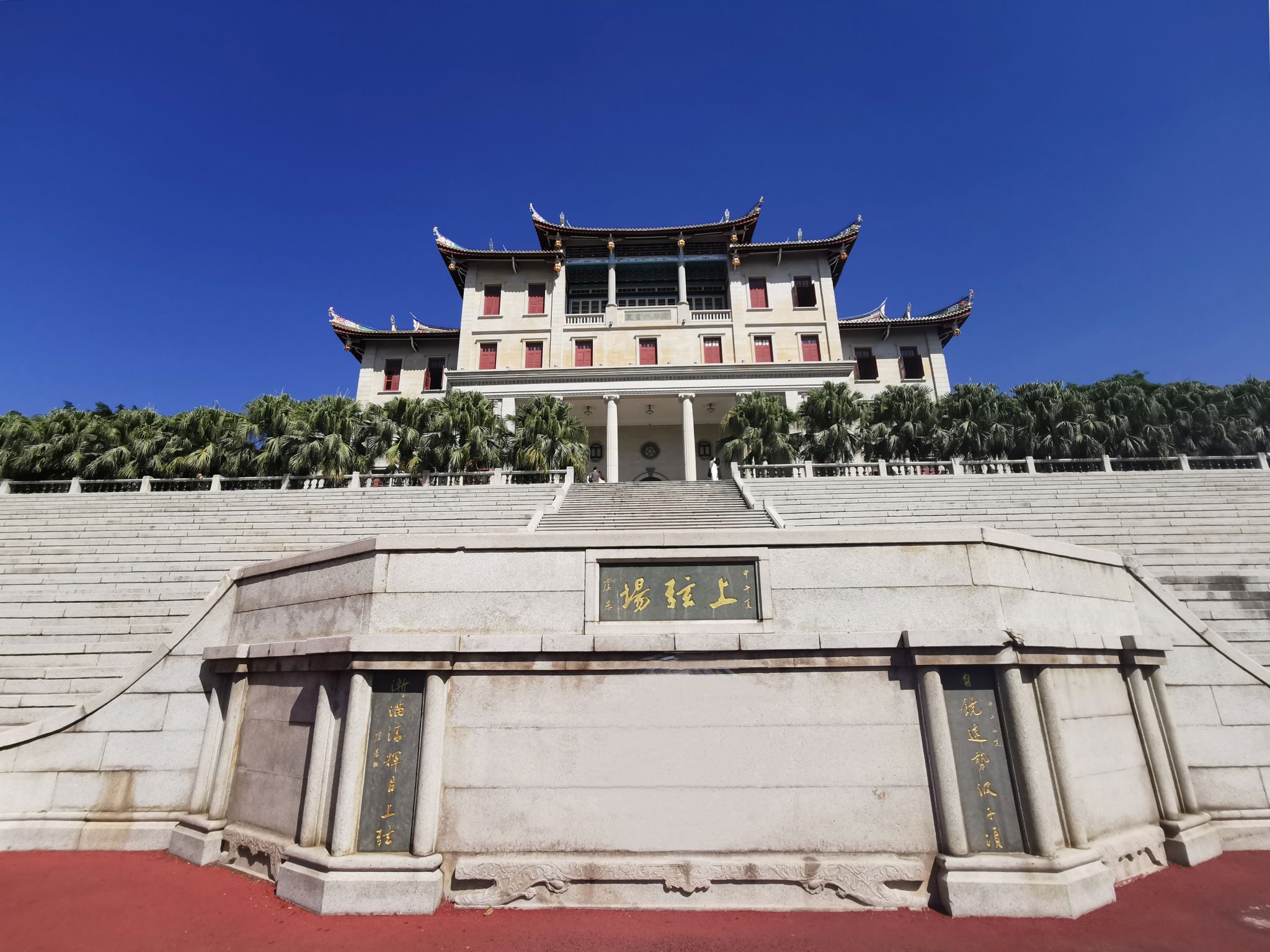 “自饶远势波千顷,渐满清辉月上弦。”由著名学者、书法家,厦大教授虞愚先生于1954年所题写的对联刻印在厦门大学主运动场——上弦场的主席台两侧,其间的“上弦场”三个大字在阳光的照耀下熠熠生辉.