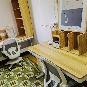 “我的房间不再是普通的地方,而是充满了希望和梦想的地方”,刘小朋友的家中,原本的学习空间只有一张简易的木桌子和一把椅子,晚上学习也只是依靠房间的白炽灯,即使在这样的环境中小朋友依旧努力,墙上贴着很多奖状和学习笔记。改造后可调节高度的桌椅、自由拼装书架和台灯等一系列学习用品都为他提供了更多的便利。肖小朋友平时和哥哥一起在两个简易的桌子上学习,但设施简陋并没有磨灭他们学习的热情,妹妹热爱阅读,贴上了粉色墙纸、配置了合适的桌椅后,她开心地说:“原来一个小小的角落 ,可以成为我的阅读天地,我现在更爱读书了!”