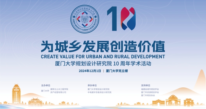 12月1日,厦门大学规划设计研究院在厦门大学克立楼举办了成立10周年学术活动。活动汇聚了近160位规划专家和学者,围绕“为城乡发展创造价值”主题,探讨城市发展新趋势和城乡空间价值的新路径。活动由厦大规划院院长郑灵飞和副院长黄友谊主持。