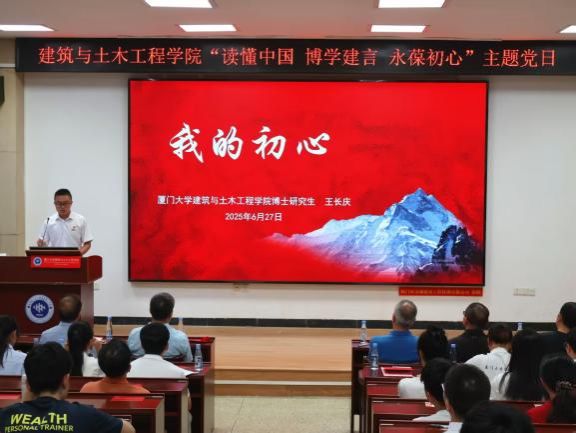 为迎接中国共产党成立104周年,6月27日下午,厦门大学建筑与土木工程学院举办“读懂中国、博学建言、永葆初心”主题党日活动。该活动是学院“读懂中国”系列活动的第八期,也是“榜样的力量”系列活动之一。出席活动的嘉宾有校基层党建联络员邱七星,学院关工委常务副主任陈和祥,学院党委副书记、院长张建霖,学院党委副书记刘建敏、邹海燕,厦门大学扬才班学员代表,学院各党支部、团支部的老师同学。本次活动由2024级土木工程系硕士研究生范思盈主持。