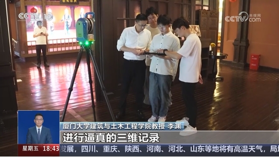 2025年6月13日(我国第9个文化和自然遗产日的前一天),中国中央电视台(CCTV)深入报道了厦门市鼓浪屿黄荣远堂的数字化修复工作。而这份报告的背后,有一群年轻的身影——厦门大学文化遗产学社的同学们。他们在李渊教授的指导下,用三维激光扫描、无人机航拍、BIM建模等技术,为百年侨宅“量体裁衣”,让历史建筑在数字世界中重生。