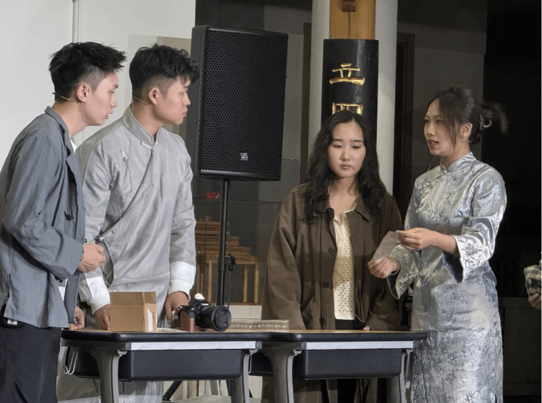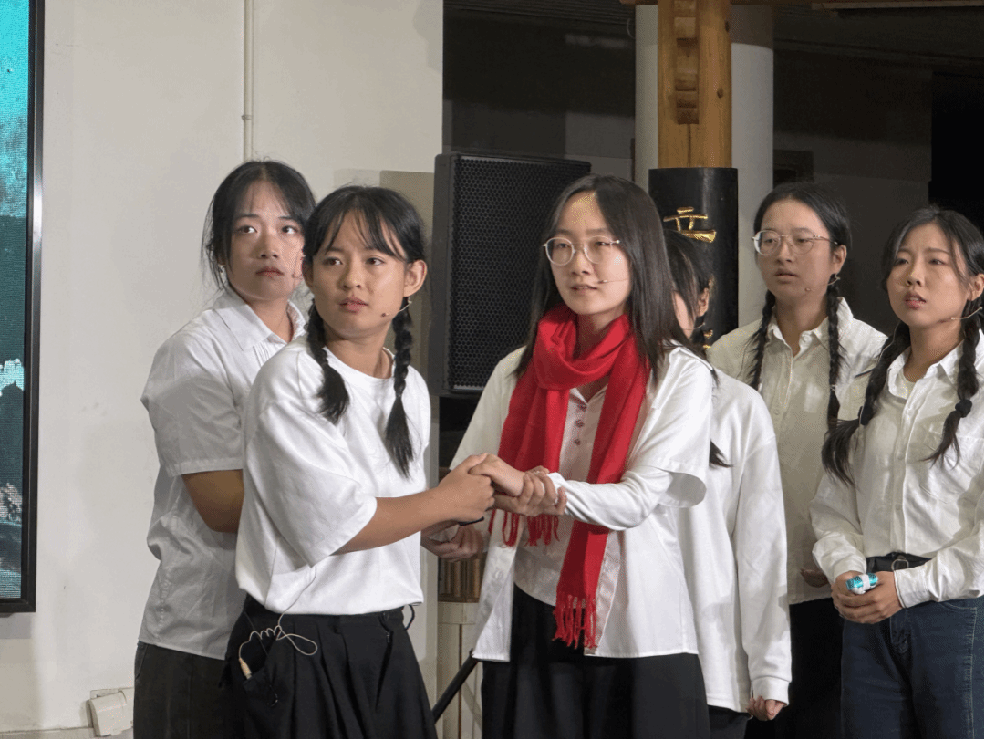 历经一个半月打磨、排练,来自本科、研究生的200余名同学组成14个剧组。经过预赛激烈角逐,8部作品脱颖而出会师决赛,以“青春演绎红色故事”的方式轮番登台。《和平之路:从抗争到共生》借风雪夜送药的普通家庭,叩问乱世中对和平的坚守;《微光》通过时空对话,让抗战烽火与当代校园同频共振;《暗房微光》以邮差阿昌冒险传递日军暴行底片的真实事件,彰显平凡者的非凡担当;《狼牙山五壮士》用跳崖前的铿锵誓言,完成与当代青年的跨时空精神接力;《东京审判》以幸存者、摄影师双重叙事,还原中方据理力争的庄严时刻;《金色的鱼钩》让锈迹斑斑的鱼钩与老班长的舍生取义交相辉映;《红岩》以江竹筠烈士狱中抗争的细腻演绎,诠释“为有牺牲多壮志”的信仰力量;《南侨赤子》通过南洋华侨兄弟“一前一后、同心救国”的抉择,抒发“天下兴亡、匹夫有责”的家国情怀。