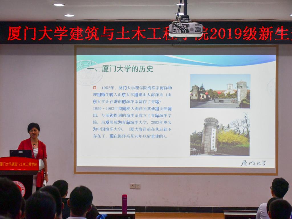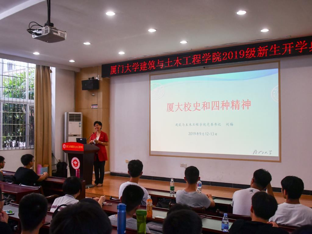 9月12日下午和13日上午,建筑与土木工程学院党委书记刘梅在曾呈奎楼118报告厅,分别为2019级本科生和研究生新生带来题为《厦大校史和四种精神》的专题党课。