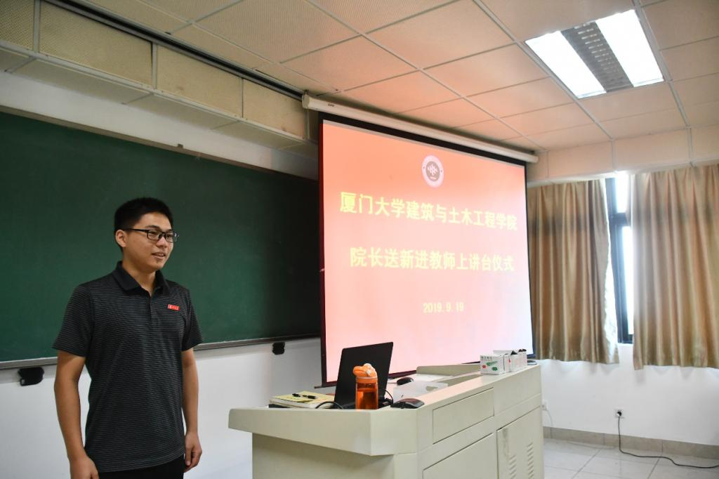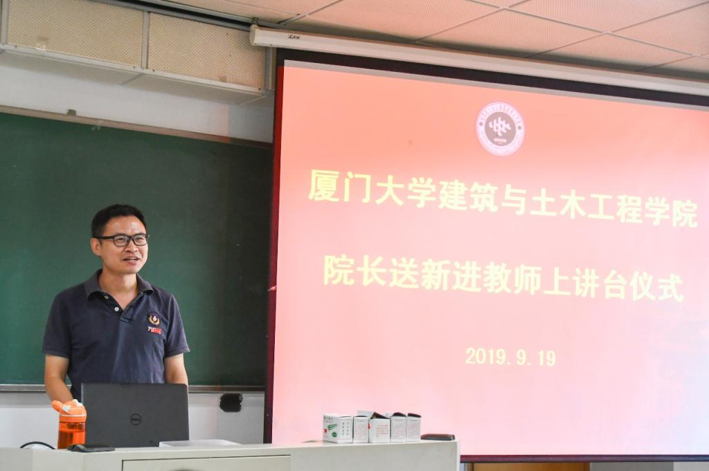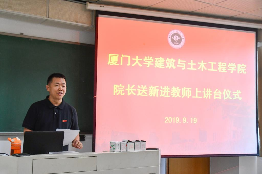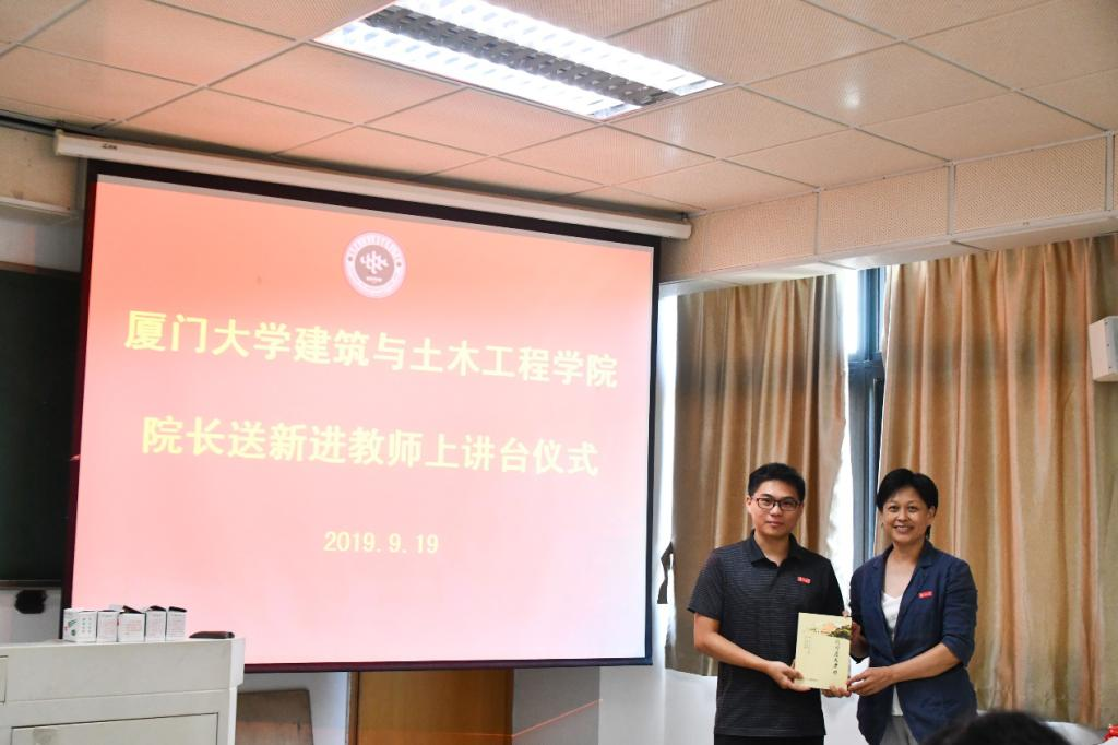 9月19日下午2点,厦门大学建筑与土木工程学院“院长送新进教师上讲台仪式”在嘉庚五302教室举行,建筑与土木工程学院党委书记刘梅,院长王绍森教授,建筑系主任(主持工作)张燕来、建筑系副系主任刘姝宇、学院办公室主任王荣华等人及建筑系新进教师洪晓强参加本次仪式。本次仪式由建筑系主任张燕来主持。