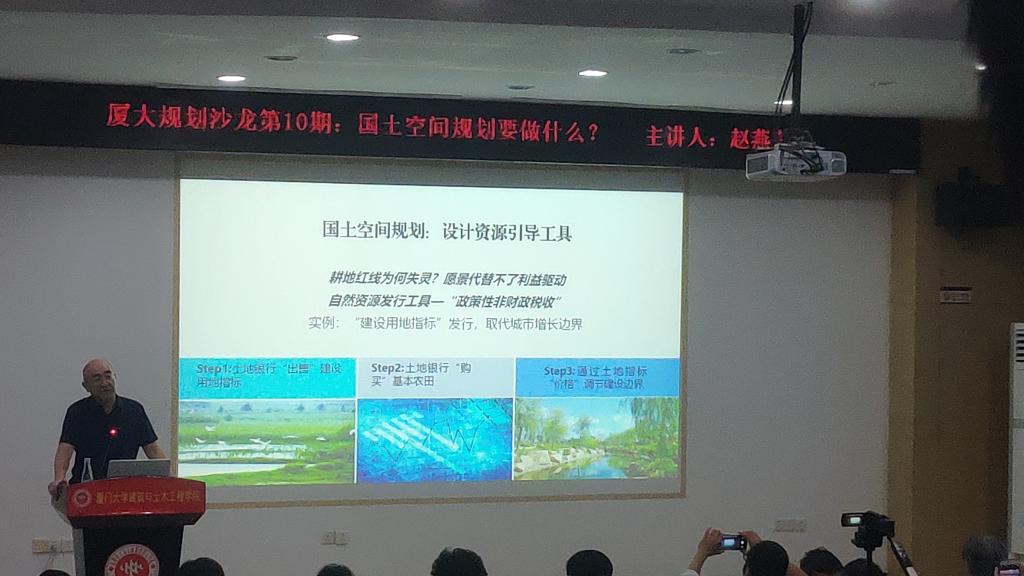 2019年11月5日下午,厦门大学建筑与土木工程学院城市规划系学术沙龙暨思政大讲堂系列活动第10期在曾呈奎楼118报告厅隆重举行。建筑与土木工程学院城市规划系教授赵燕菁作题为《国土空间规划要做什么》专题报告。出席本次讲座的嘉宾有厦门市交通运输局副局长任国岩、厦门城市规划学会王伟会长,厦门市规划界人士及城乡规划系全体师生等。本次沙龙由规划系副系主任(主持工作)杨哲主持。