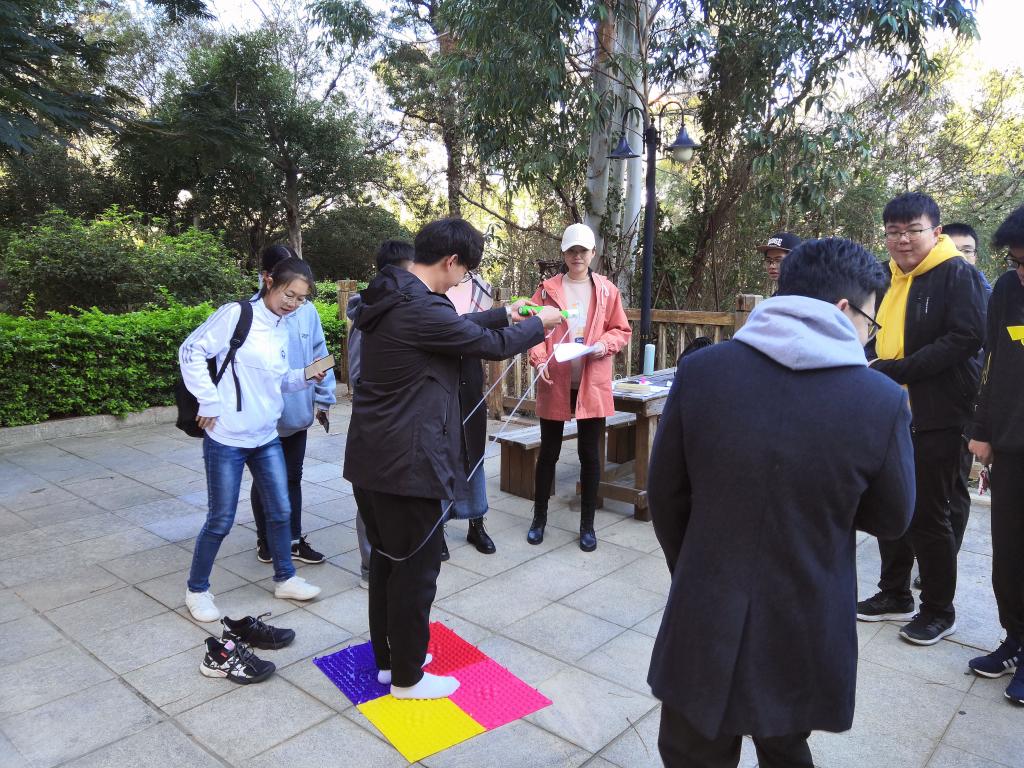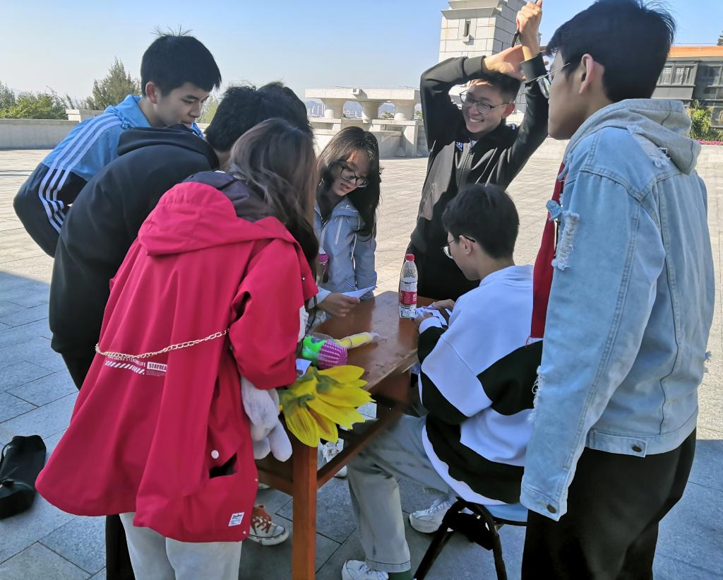 活动前夜,所有参赛同学共聚映雪楼301教室,重温“一二九”运动的历史,并通过参与线下答题提前获取决胜此次活动的关键卡牌,通过关键卡牌开启支线任务,获得额外加分。活动当天,随着发令声响,来自不同学院、不同年级、不同专业的23支队伍应声齐发,寻找藏匿在大南校门、思源谷、科学艺术中心、蔡清洁楼四个游戏点,每个游戏点分别天津、南京、上海、武汉的四个城市,意在让参赛队员重走爱国学生走过的道路,到达目的地后,同学们需按照游戏规则抽取道具拍摄爱国视频、和队友们完成以“红色精神”为主题的你画我猜游戏、背诵指定经典政策等基础项目,同时为了让同学们感受到革命成果来之不易,工作人员还加大难度,设置了丢水瓶、指压板跳绳、东问西答与憋笑挑战等难度稍高的游戏,除了考察个人身体素质、反映能力,为加强团队协作能力,活动还别出心裁地为参赛选手们准备了指环运输、进阶版石头剪刀布等合作游戏。通过寓教于乐的方式,令参赛选手在浓厚的革命历史氛围中感受历史、牢记英雄、不忘初心、牢记新一代新青年的使命。