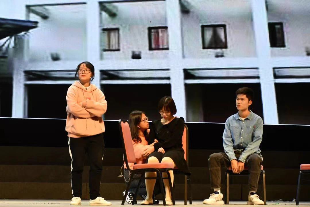 大幕拉开,精彩的表演连番上演,有的诙谐,有的深沉,都引发了大家对大学生心理健康问题的思考,颇有意义。厦门大学建筑与土木工程学院的“银河互喂队6.0队”作为当晚的第八支队伍压轴出场。
