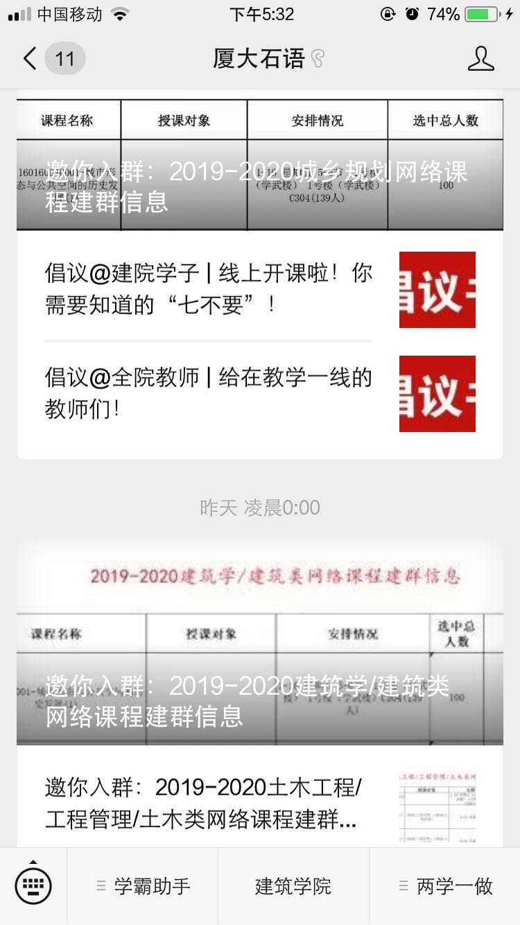 学院本学期共有课程128门,除去实习、毕业调研及实验课延期开课,122门课开课建群。学院积极指导教师将厦门大学课程中心平台及网络授课平台结合起来,充分利用线上教学优势,借助中国大学mooc、腾讯课堂、腾讯会议、钉钉等平台进行直播教学,并提前进行“网络试课”,保证疫情防控期间的教学进度及质量,实现“学习不延期,质量有保障”。临近“线上开学”,学院学生工作组通过学院公众号、课程微信群、QQ联系群等方式公布课群信息,发布“线上上课”教师须知,学生上课“七不要”等通知,安排辅导员协助课程群建设,及时通知学生加入课群,进群了解跟进学生上课情况,确保学生100%覆盖。2月17日,开学第一天,在这“非常”时期,我院22门次课程成功上线并顺利开讲,师生上线率实现首个百分百,首次“直播”备受好评,师生体验总体良好,而这背后,是全院师生共同付出的“非常努力”。