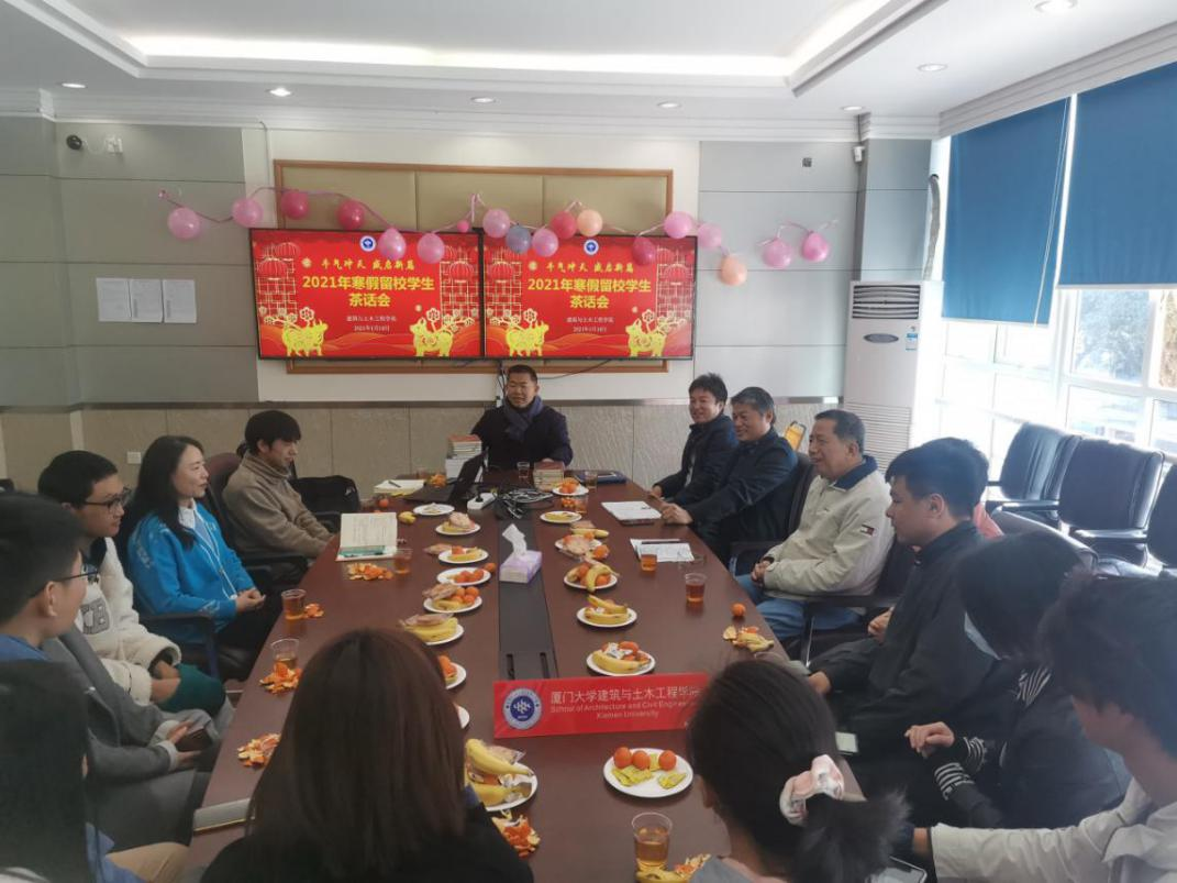 2021年1月18日上午,我院在曾呈奎楼208会议室举行2021年寒假留校学生茶话会。学院党委书记、院长王绍森教授,厦门大学基层党建联络员黄定基、学院党委副书记王瑛慧、黄俊清,院团委书记杨明伟、院团委副书记林婕、辅导员盛世维以及学院部分寒假留校学生参会。