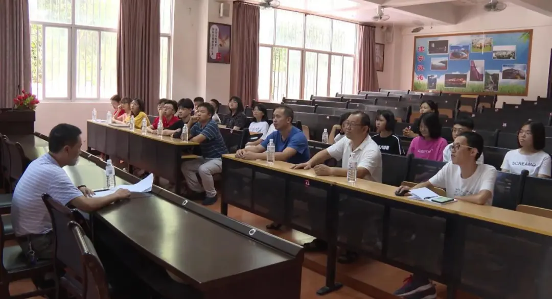 随后,实践队前往均口中学,举办河长制知识讲座暨“闽江源河小禹青年志愿护河队”(以下简称“护河队”)授旗仪式。讲座主讲人系建宁县水利局河长办主任阮承杰。在讲座中,阮承杰主要介绍了河长制有关的治理体系以及河流保护的相关常识,并在讲座的最后与实践队成员进行了座谈,解答了实践队师生提出的河流保护机制、垃圾处理方式、配套设施建设等问题。随后,实践队前往均口中学,举办河长制知识讲座暨“闽江源河小禹青年志愿护河队”(以下简称“护河队”)授旗仪式。讲座主讲人系建宁县水利局河长办主任阮承杰。在讲座中,阮承杰主要介绍了河长制有关的治理体系以及河流保护的相关常识,并在讲座的最后与实践队成员进行了座谈,解答了实践队师生提出的河流保护机制、垃圾处理方式、配套设施建设等问题。在讲座后的护河队授旗仪式上,实践队带队老师杨明伟将实践队自行设计制作的队旗授予了均口中学的优秀团员们,成立了负责日后长期巡河工作的护河队。均口中学校长曹金生表示热烈欢迎实践队的到来,并且希望与厦门大学建立长久有效的合作机制,将未来长期的巡河护河活动落到实处。
