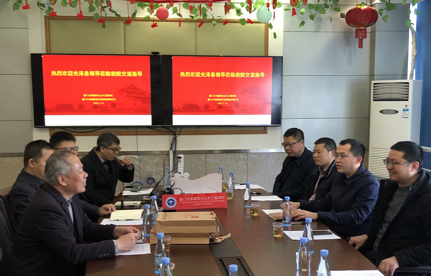 2月14日上午,南平市光泽县委副书记黄水彪一行来我院开展挂钩帮扶合作座谈会。光泽县委副书记黄水彪、副县长张建平、县住房和城乡建设局长黄辉、县城市建设攻坚指挥部办公室主任汤军、杭川镇党委副书记王强,建筑与土木工程学院党委书记王绍森教授、院长张建霖教授、建筑系副教授王量量、韩洁、李苏豫,建筑设计研究院有限公司院长李立新教授、副院长刘建元等出席会议。