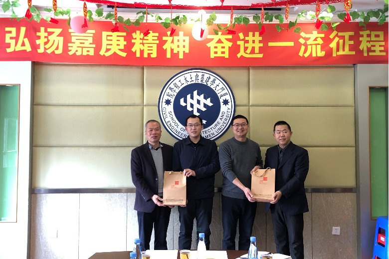 王绍森和张建霖代表学院将厦门大学百年精神文化系列之《厦门大学百年建筑》一书赠与光泽县代表团,双方一致表达了对厦门大学与光泽县挂钩合作的信心和未来期许。