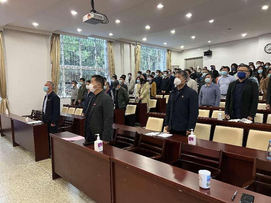 会议在国歌声中拉开帷幕。院长张建霖教授在会上作学院工作报告和财务工作报告。张建霖回顾了过去一年来,学院在党建思政工作、人才培养、队伍建设、科研与平台建设、对外交流与合作、学科与专业建设、社会服务等方面的工作,解读2022年的工作计划要点,汇报学院2021年的财务决算和2022年的财务预算情况。