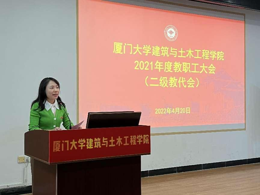4月20日,厦门大学建筑与土木工程学院2021年度教职工大会(二级教代会)在曾呈奎楼118室举行。大会由院党委副书记、工会主席王瑛慧主持。