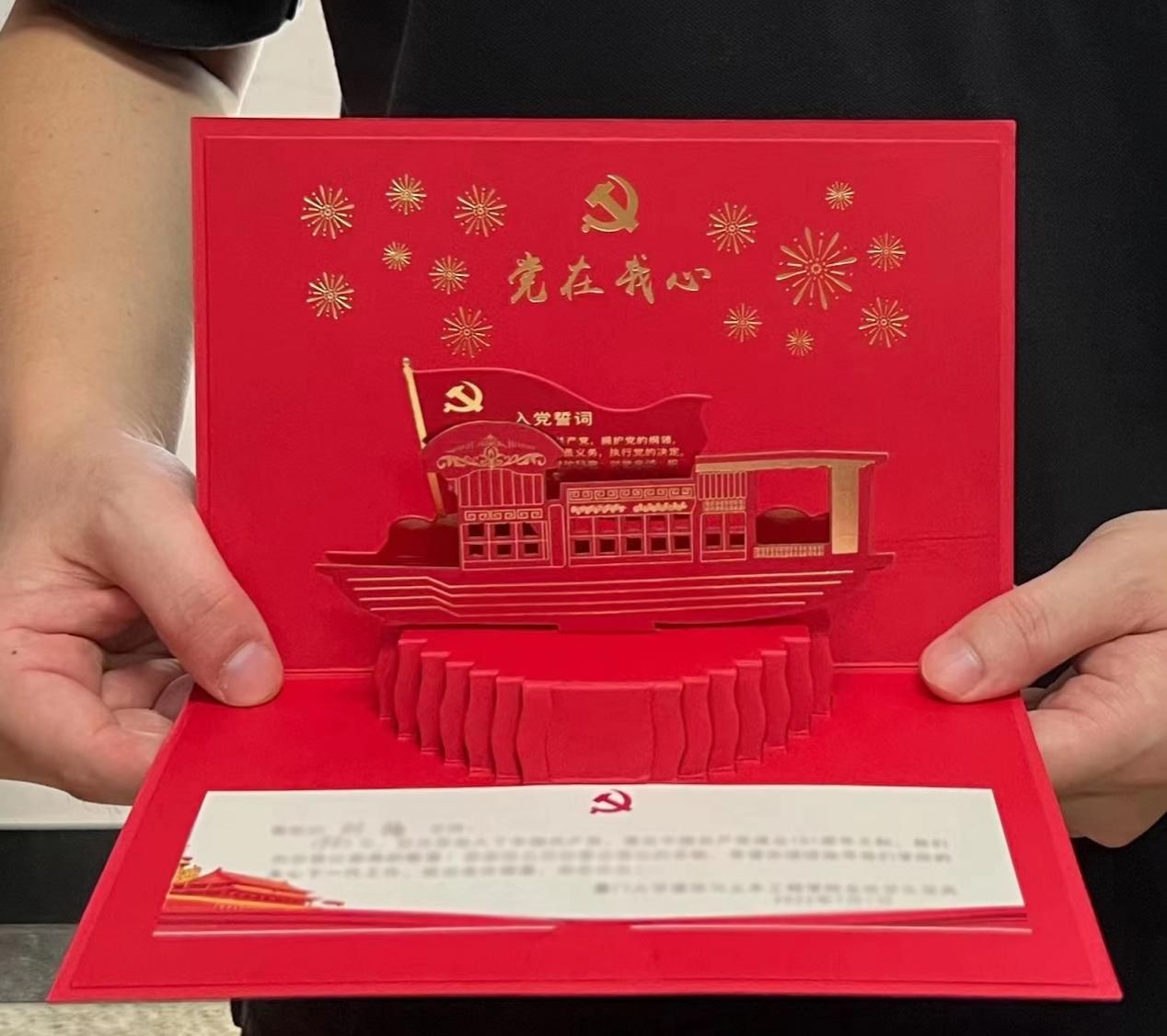 为感恩退休党员同志们为党的事业所做的贡献和对学院关心下一代工作的支持,学生党员代表为他们精心准备了带有“不忘初心、牢记使命”字样的红色生日贺卡,并在贺卡上悄悄写上了他们的入党时间,给老师们送上了一个小惊喜。