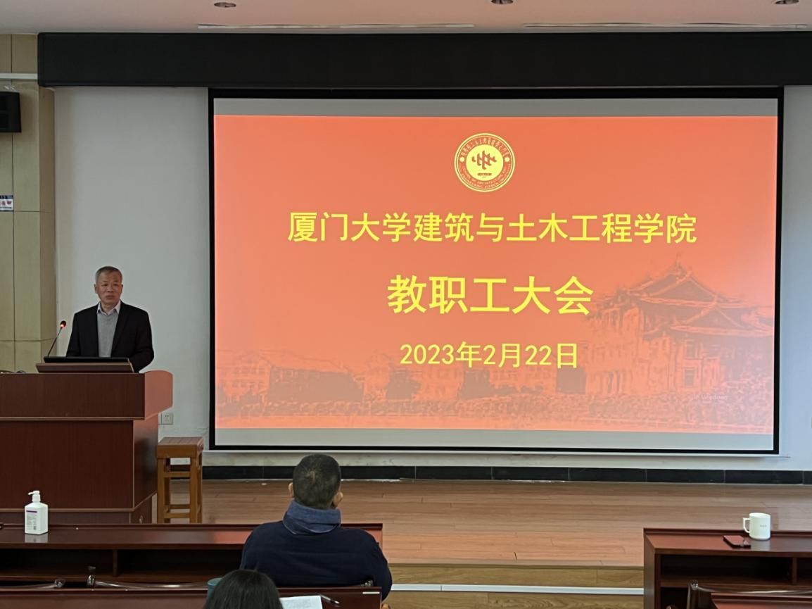 2月22日下午,建筑与土木工程学院召开教职工大会,扎实推进本科教育教学审核评估工作开展。学院党政领导以及全体教职工参加会议。