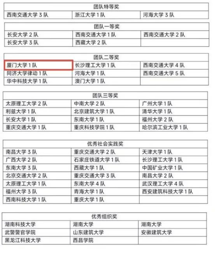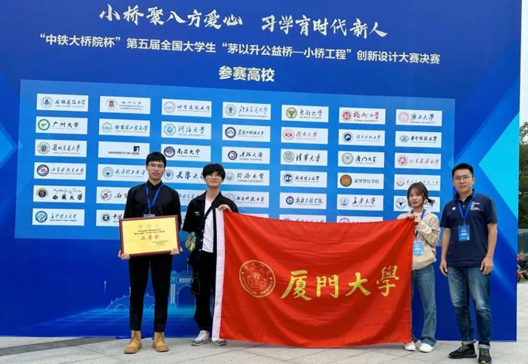 厦门大学1队以设计作品“榄枝桥”获得大赛二等奖。参赛队伍由2020级土木工程专业本科生梁锐鸿、贾坳錡、范思盈、蓝红星,2021级土木水利专业硕士研究生徐鹏海组成,由土木工程系高婧教授、许志旭工程师指导。历时一个多月,团结协作、辛勤付出,成功闯进决赛,并在决赛65个高校队伍的激烈角逐中,以设计作品“榄枝桥”夺得大赛全国二等奖。