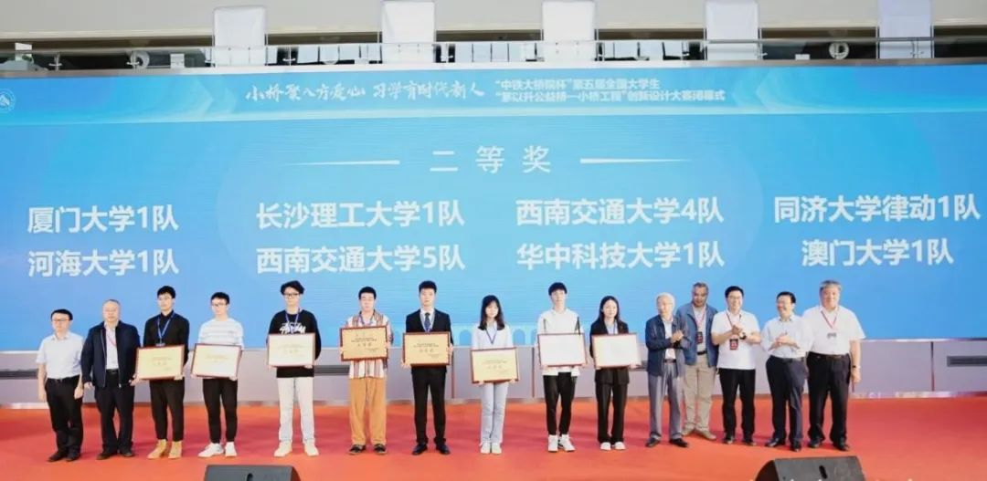 9月23日,由北京茅以升科技教育基金会、西南交通大学联合主办,交通运输部直属机关团委、教育部高等学校交通运输类专业教学指导委员会、教育部高等学校土木类专业教学指导委员会支持的“中铁大桥院杯”第五届全国大学生“茅以升公益桥—小桥工程”创新设计大赛决赛在西南交通大学犀浦校区落下帷幕。本届大赛共有45所高校的73支队伍通过初赛选拔进入决赛。经过两天激烈地角逐,大赛共产生特等奖3支,一等奖5支,二等奖8支,三等奖12支,社会实践奖20支。