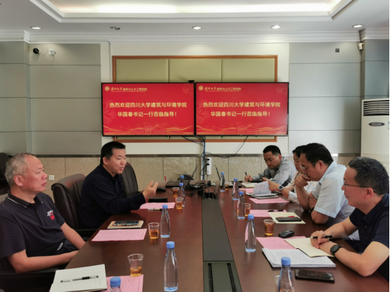 会上,张建霖对四川大学建筑与环境学院一行人的到来表示欢迎。他指出,此次交流是加强双方合作、完善学院管理、推动学院人才培养和教学科研的重要机会。华国春介绍了四川大学建筑与环境学院的基本情况,并表示希望通过此次交流活动推动双方互学互鉴,以发现问题、解决问题为导向,建立长效合作机制,不断推进学科建设与发展。双方主要围绕教学改革、学科建设、教师评聘考核、学生竞赛保障机制等方面进行了深入交流。