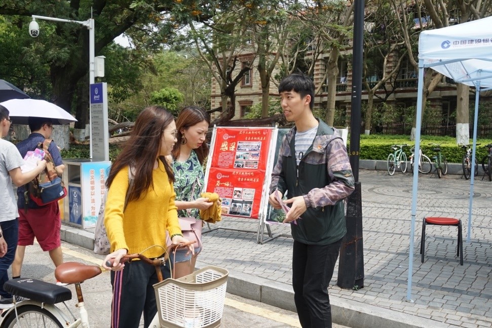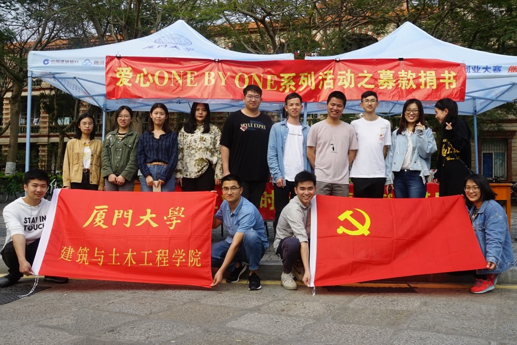 2018年4月21日,由厦门大学建筑与土木工程学院研究生会主办的“爱心One By One”系列活动——募款捐书活动在思明校区芙蓉四前广场圆满举行。本次活动也是建筑与土木工程学院“建功立业新时代,青春奉献到基层”主题活动的重要内容之一,与我院土木工程系研究生第一党支部联合开展,充分发挥了党员的先锋模范带头作用。各位党员、预备党员将党员徽章佩戴在胸前,向厦大师生和游客展示了我院党员的奉献精神和积极向上的精神风貌,得到了广大师生和社会人士的大力支持与认可!