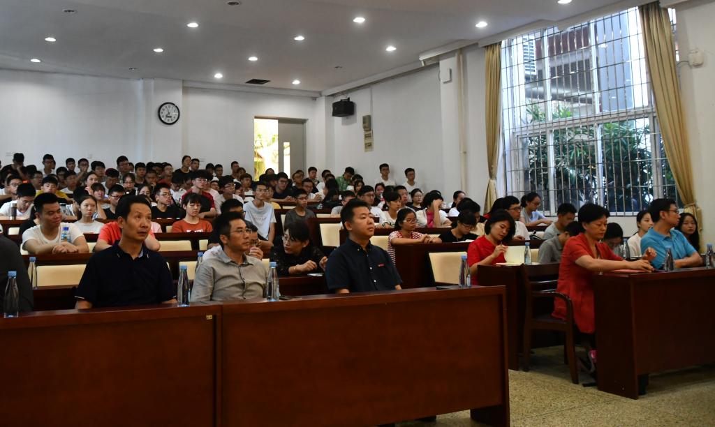 开学典礼首先由王绍森致辞,他代表学院向2019级新生表示衷心祝贺和热烈欢迎。随后,他从求学、生活等多个方面,教导同学要牢记自律自强,努力打好学科基础,及时明确国家责任,时刻遵守言行法则,主动加强身心锻炼。最后,院长祝愿每位学子未来都能学业有成,始终保持身心健康,努力成为国家栋梁。