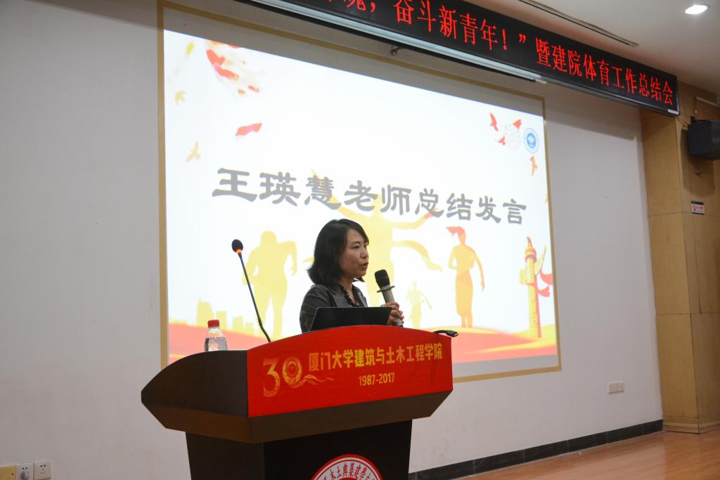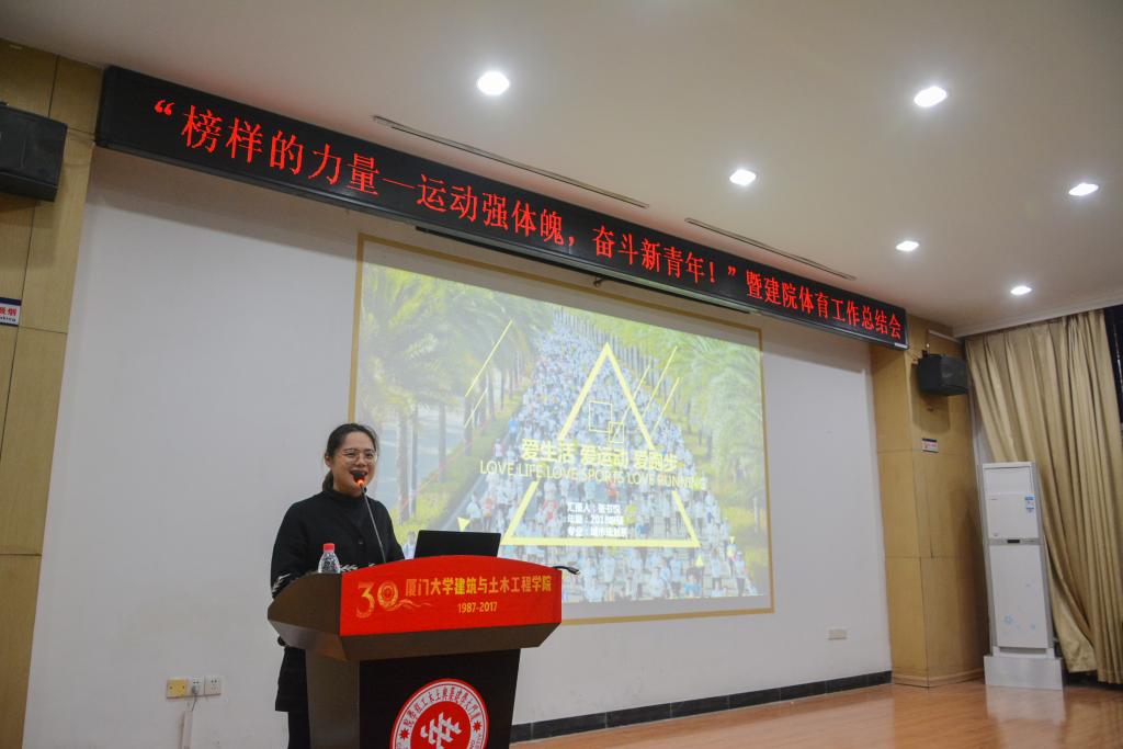 2019年12月11日晚上七点,厦门大学建筑与土木工程学院“榜样的力量”系列活动——"运动强体魄,奋斗新青年"体育达人分享会暨建院体育工作总结会在曾呈奎楼118报告厅成功举办。建筑与土木工程学院党委副书记王瑛慧老师、辅导员林婕老师出席了此次活动。