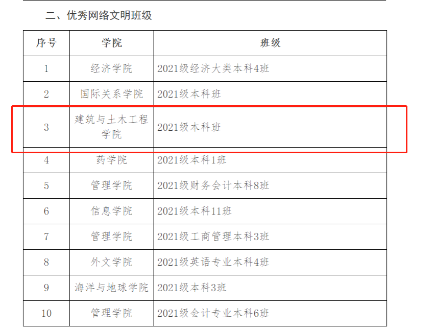 为创新网络思想政治教育,做好网络育人工作,学校于2021年10月至2022年5月,举办了“2021-2022学年新生十佳网络文明班级”评选活动,经过初赛、复赛和决赛的激烈角逐,我院建筑2021级建筑类本科班荣获“优秀网络文明班级”称号。