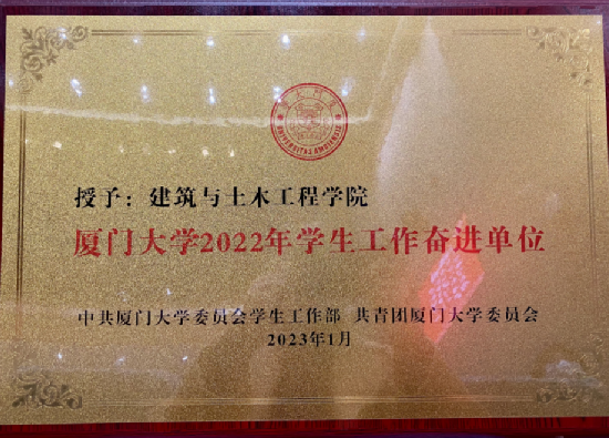 学院获评厦门大学2022年学生工作奋进单位