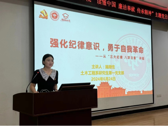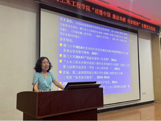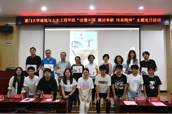 6月24日下午,厦门大学建筑与土木工程学院举办“读懂中国 廉洁奉献 传承精神”主题党日活动。该活动为学院“读懂中国”系列活动第七期,也是学院“榜样的力量”系列活动之一,由学院党委主办,学院博士、硕士、本科学生党支部及学院研究生会联合承办。