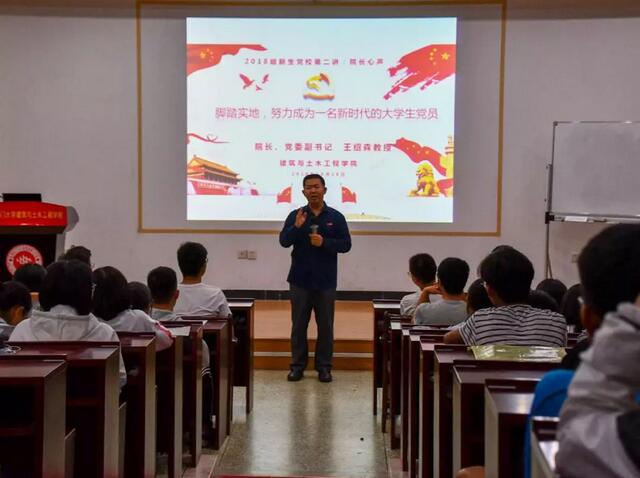 10月16日,建筑与土木工程学院2018级新生党校第二讲在曾呈奎楼118报告厅举行。学院院长、党委副书记王绍森教授给大家带来了题为《脚踏实地,努力成为一名合格的大学生党员》的主题讲座,参加本场报告的有建筑系与规划系2018级研究生党支部、土木工程系2018级研究生党支部以及2018级本科生全体新生。讲座由学院党务秘书郑建斌主持。