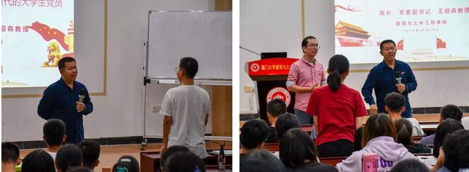 在讲座的结尾,同学们抓住宝贵的提问时间,先后提出了““大学生为成为党员该做如何准备”、“新时代对大学生党员的要求”等问题,王绍森对于同学们的提问一一作出了耐心详细的解答。