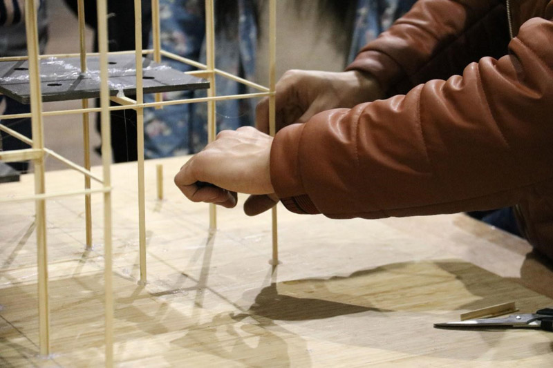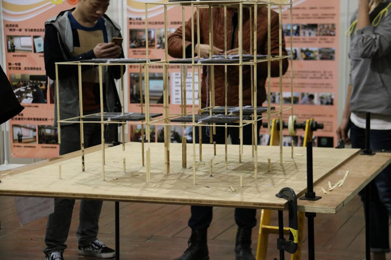 为了提高学员的兴趣,学长通过“剪柱子”来诠释模型的精髓—去繁就简。由于缺乏专业知识,参赛人员做的模型更多的是形象工程,对结构缺乏直观的认识,使比赛索然无味。“剪柱子”环节旨在引导大家敢于创造,打破常规。