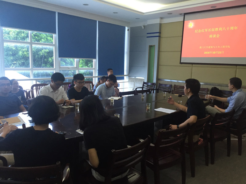 各支部党员代表就观看此次讲话进行反思与交流。其中规划系教师黄章钦、建筑系教师宋代风、土木工程2014级研究生党支部李顺时等人结合学习教学实践、科研经历、生活等分享了自己的体会。宋代风老师表示,新时期的我们也可以做到老一辈能做到的事情,并提出他们能做到的原因来自三方面:年轻的心境、认真的态度、为他人奉献的信念支撑。李顺时联系自身和科研,指出每次设计竞赛都是一次长征,学术要追求科学真理,从实际出发根据现场改变策略。金老师首先回顾长征历史,提出老一辈革命家为何能坚持下来这一问题,进而引出长征精神,并联系现今社会,指出如今一些同志缺乏信仰问题,结合自己的美国留学经历,激励大家学习长征精神,努力奋斗。接着,各支部党代表就此次直播踊跃发言。最后,党委副书记黄明伟发言,通过收看长征直播,更加深刻地认识到党员要保持进取精神、坚定信念,在以后学习生活中要不忘初心,继续前进,用实践检验真理,结合国情不断完善思想,把长征精神传承下去。与会同志在相互交流与分享中,更加深刻的学习了长征精神,更加坚定了以后的奋斗方向和意志,不怕困难,向老一辈革命家学习,勇往直前。