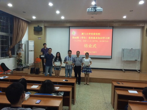 随后,王炳华老师发表了精彩的讲话。他首先对本期学习班的情况进行了总结,并结合自身经历和最近的时事与大家分享了自己的心得,最后对大家提出了殷切的希望。他希望同学们提高自己的党性修养,要以党员的标准来要求自己,不仅在思想上,更要在行动上,积极向党组织靠拢,争取早日成为党组织的一员。王老师的讲话引用了大量生动活泼的事例,内容丰富而深刻,老师的一次讲话犹如一次党校的讲座,深受在座同学们的欢迎。接着,王炳华,李启忠为本期顺利结业的学员颁发结业证书,鼓励他们继续努力,做好先锋带头作用。最后,建筑与土木工程学院、人文学院、体育教学部联合举办的党委党校第60期党的基本知识学习班结业式在庄严的《国际歌》声中圆满落下帷幕。