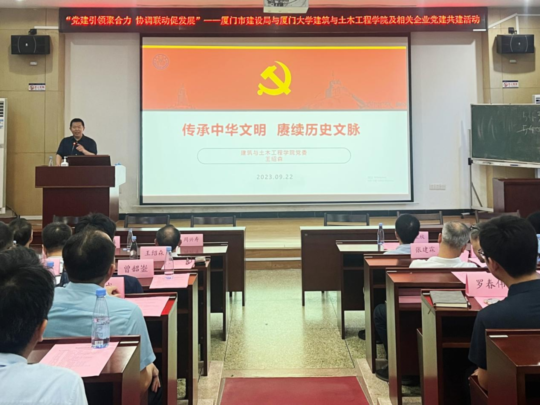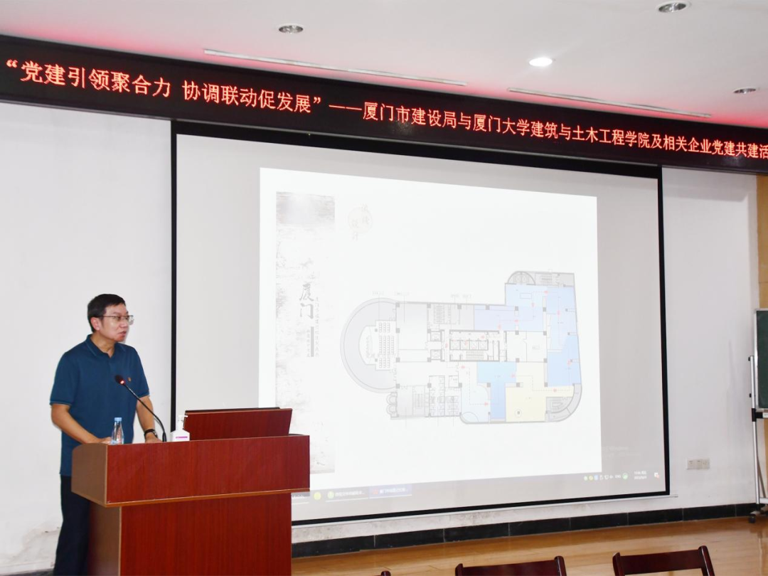 9月22日下午,厦门市建设局机关第四党支部与厦门大学建筑与土木工程学院、建筑设计研究院、城乡规划设计研究院在曾呈奎楼118报告厅联合举办“党建引领聚合力,协同联动促发展”党建共建交流活动。本次活动由厦门大学建筑与土木工程学院副院长张燕来主持。