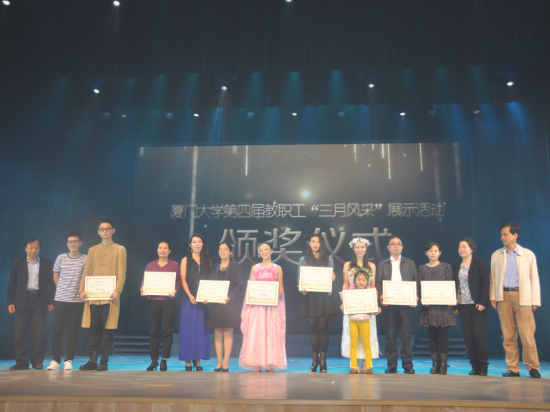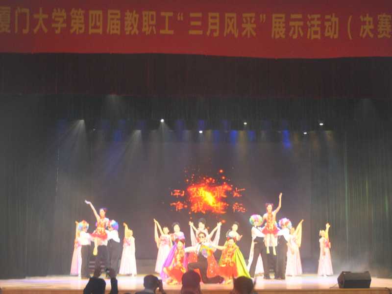 2016年4月16号晚,厦门大学第四届教职工“三月风采”展示活动决赛在建南大会堂隆重举行。建筑与土木工程学院教职工代表队的作品“拉丁恰恰”、“节日欢歌”惊艳全场,并以96.66分的高分获得此次比赛的第一名,继第三届教职工“三月风采”比赛之后,再次荣获一等奖,此外学院还获得最佳视频奖。