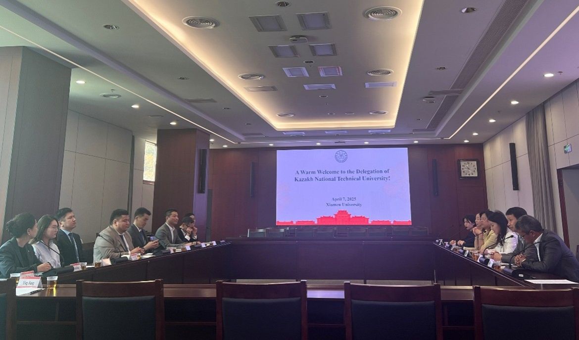 2025年4月7日,哈萨克斯坦国家技术大学(萨特巴耶夫大学)副校长萨姆哈特・叶尔梅克巴耶夫教授一行访问厦门大学。我校副校长尤延铖教授会见了来宾,双方就深化两校合作交换意见。