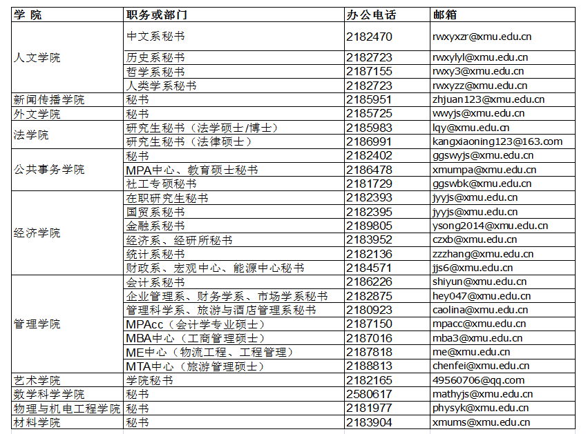 关于所报考专业的具体问题,考生可向各学院(系)研究生教学秘书咨询(区号0592):
