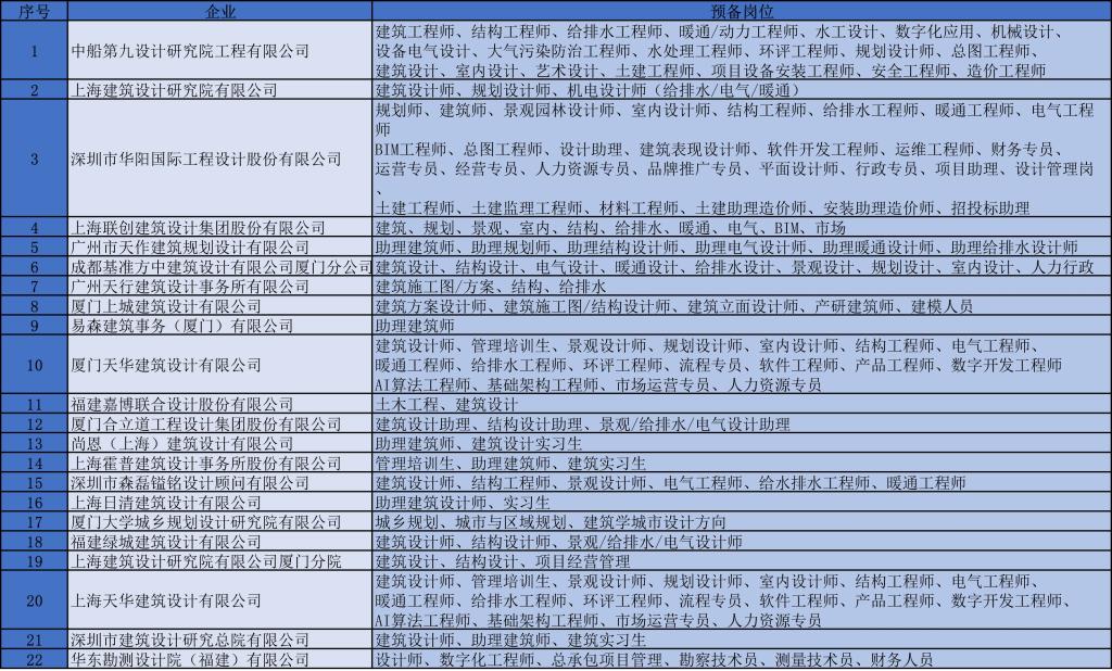 深圳院、上海院、华东院、中船九院等国企设计院,以及联创、天华、深圳华阳、基准方中等全国各大知名设计院齐聚一堂!工程、成本、设计、软件、财务、人力、运营、投资、行政等各个岗位应有尽有!