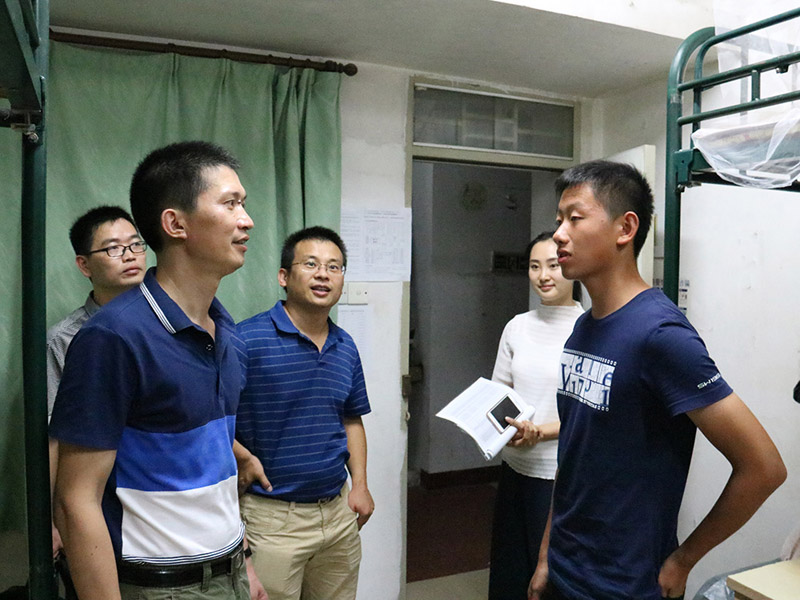 晚上7点,学院党委副书记黄明伟,班主任吴新烨、洪世键,辅导员侯琳和学生干部们来到新生宿舍走访。走访过程中,党委副书记黄明伟与新生家长亲切交流,重点询问了新生住宿方面存在的问题;辅导员和班主任老师送去温馨的关心和祝福,希望新生们能在大学里有所收获;学生干部们坚持为新生服务,着力现场解决新生遇到的问题,获得了大家的一致好评。