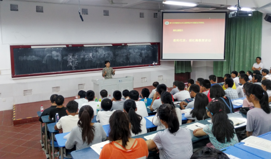 新老师生代表发言先后进行。首先,厦门大学十大“最受学生喜爱教师”、土木工程系教授胡红梅作为教师代表,庄严承诺学院全体老师将会兢兢业业教书育人,做好本职工作。同时她还对同学们提出两点希望,一个是学习,主动学习,深入学习,另一个是成长,在学校的时间里,提升自己,不断进步。接着,本科生喻丽璇、研究生吴俊超作为老生代表,与新生分享了自己在厦大的点点滴滴与感悟,鼓励新生在厦大追逐梦想。最后,本科生新生代表方佳清、研究生新生代表吴帆,表示将会珍惜在厦大学习的机会,认真弘扬厦大精神,认真学习,以最好的自己回报家人、回报学校、回报社会、回报祖国。