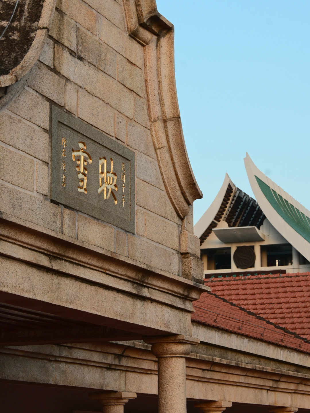 在我楼顶阳台之上,镌有陈嘉庚先生亲题的“映雪”二字。