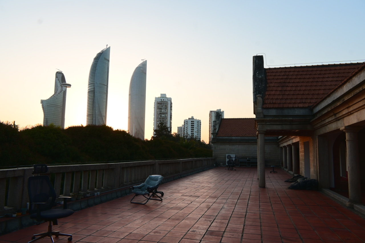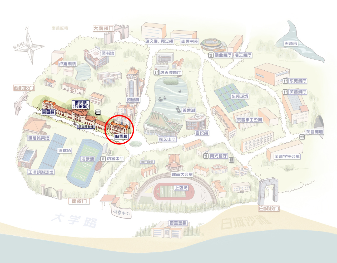 南边面向演武操场,北靠嘉庚楼群,东侧邻居是科学艺术中心,向西南望去便可看到厦门的地标建筑世贸双子塔。