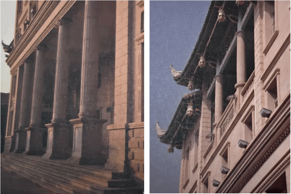 建南大礼堂柱式(左)建南大礼堂挑檐(右)